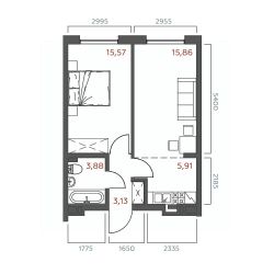 Общая площадь44,33 м²