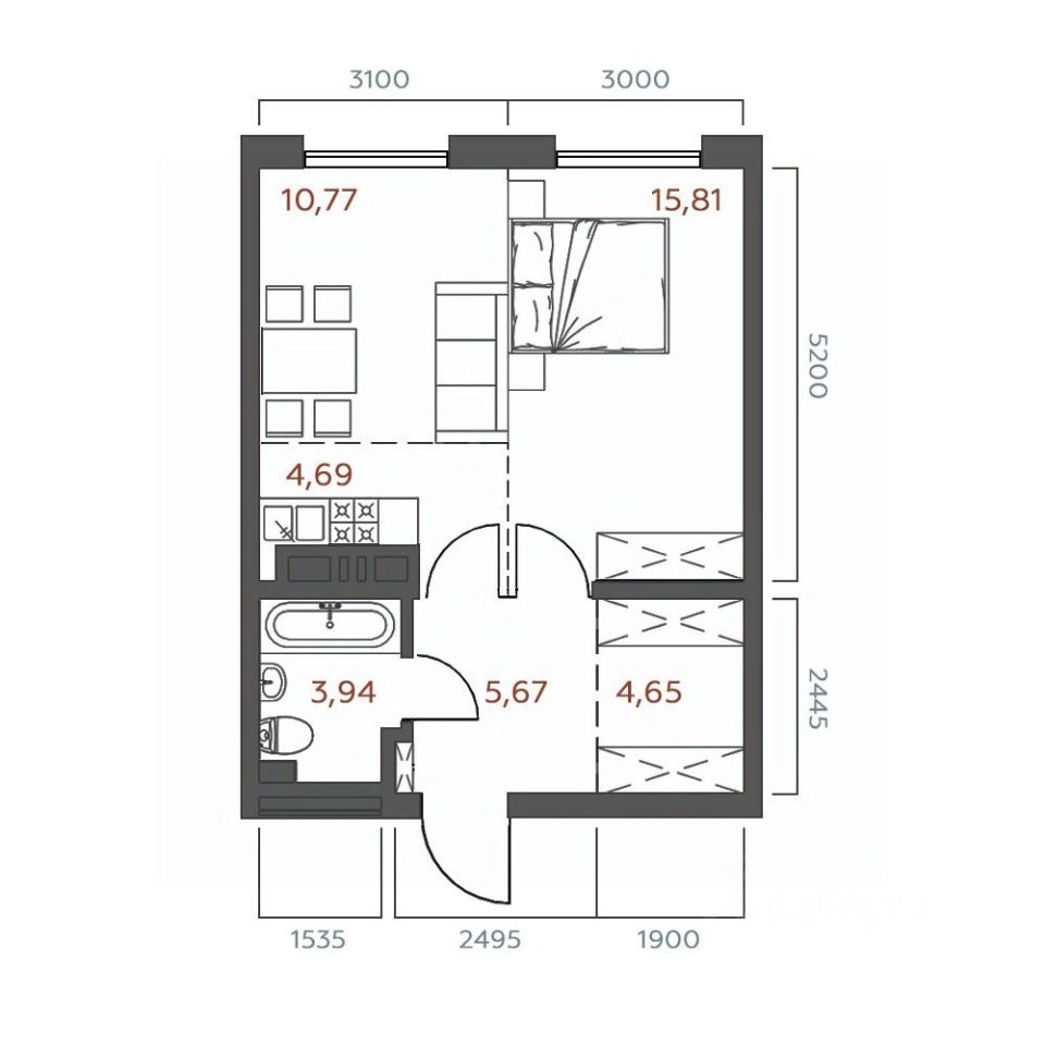 Общая площадь45,53 м²