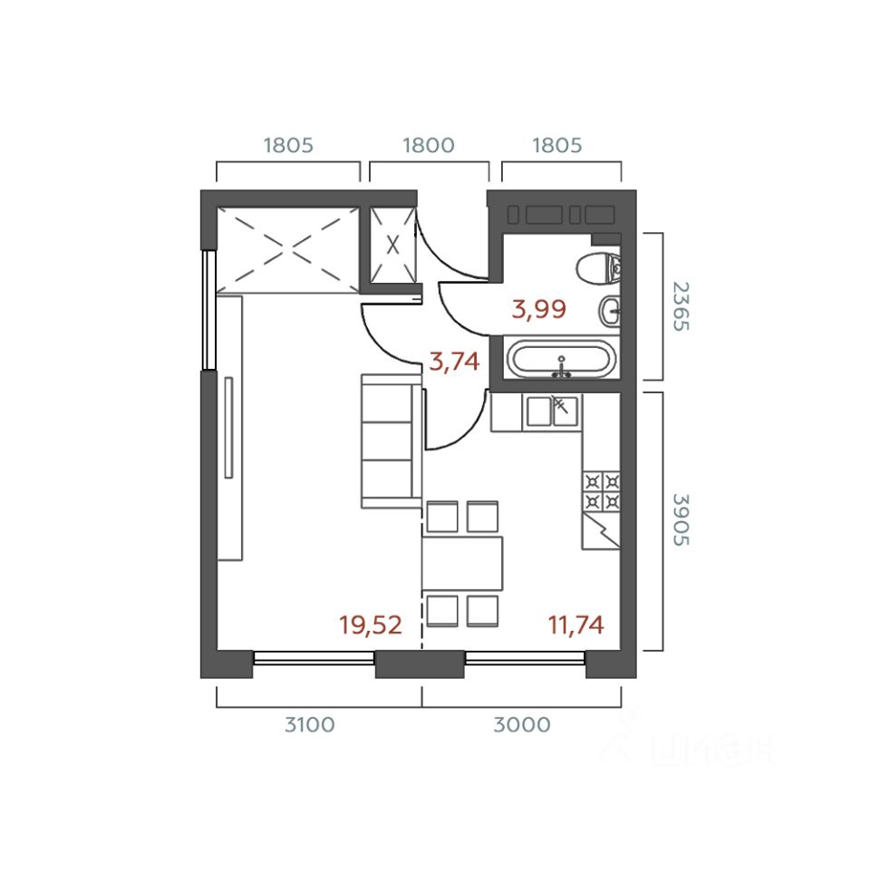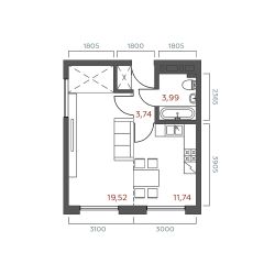 Общая площадь38,99 м²