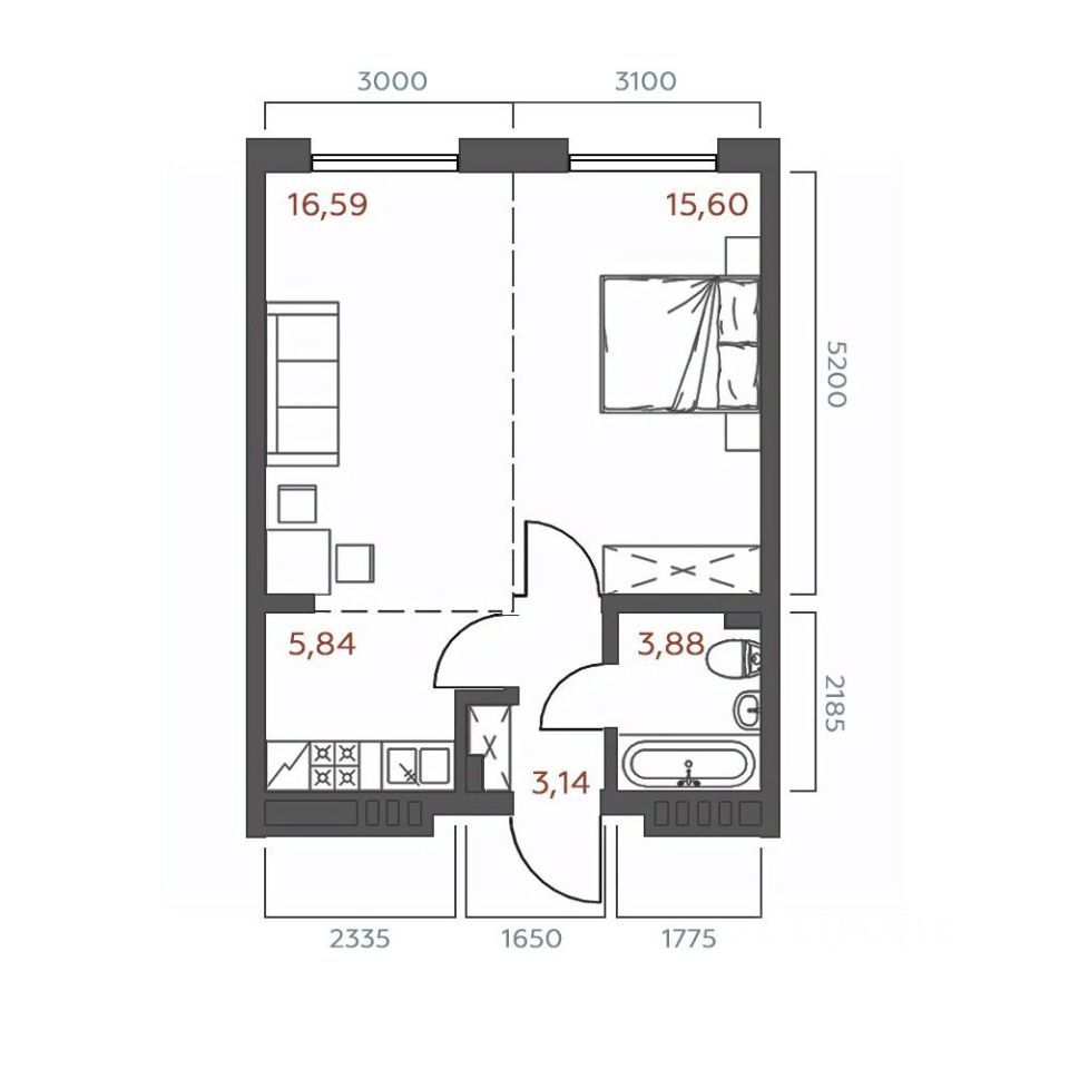 Общая площадь45,05 м²