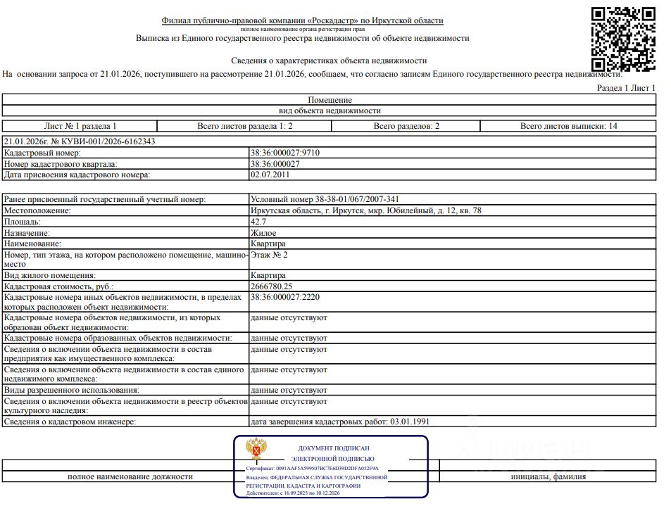 Сведениями о фактическом состоянии объекта недвижимости, о задолженности по коммунальным платежам и взносам на капитальный ремонт, об обременении третьих лиц в виде сохранения права пользования объектами организатор торгов не располагает.Зарегистрировано три человека, из них один несовершеннолетний.