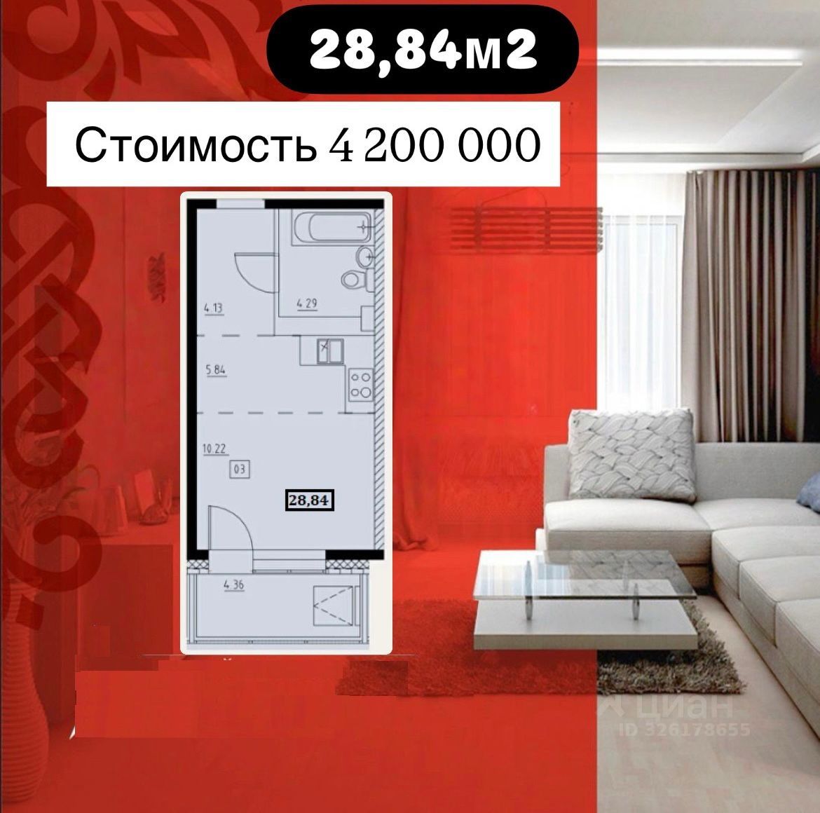 Продается квартира-студия Иркутск-2 ул. Красный Путь 63, общей площадью 28,84 кв. м. плюс балкон 3 кв. м.