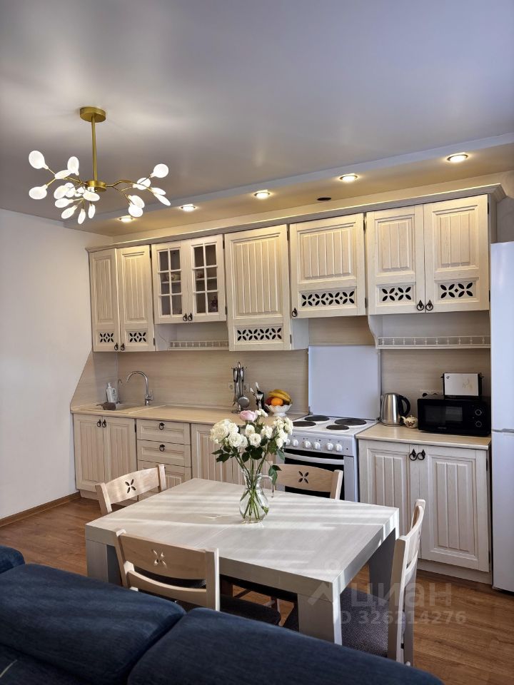 Продаётся уютная трёхкомнатная квартира площадью 72.1 квадратных метров. Квартира оснащена качественной отделкой и всей необходимой мебелью, которая остаётся новым владельцам после покупки.