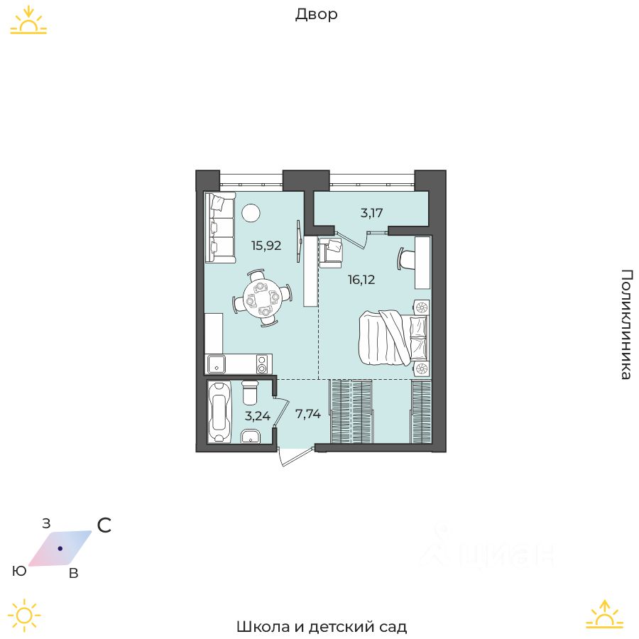 Продаётся 1-комнатная квартира в строящемся доме (Дом 17 (Академика Герасимова, 10)), срок сдачи: I-кв. 2026, общей площадью 46.19 кв.м., на 1 этаже. Расположение, транспортная доступность