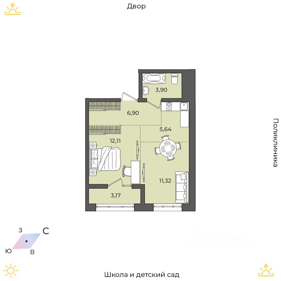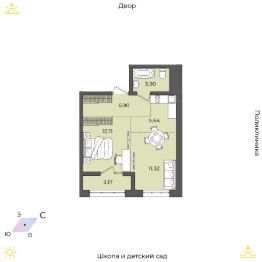 Продаётся 2-комнатная квартира в строящемся доме (Дом 17 (Академика Герасимова, 10)), срок сдачи: I-кв. 2026, общей площадью 43.04 кв.м., на 6 этаже. Расположение, транспортная доступность