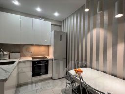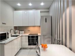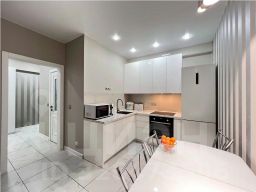В квартире очень удачная планировка, вместительный холл с удобной входной группой, раздельные комнаты и большая кухня-гостиная, совмещенный санузел, застекленная лоджия. Ремонт в квартире дизайнерский, из качественных, дорогих материалов. В кухне-гостиной полы с подогревом.