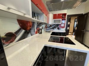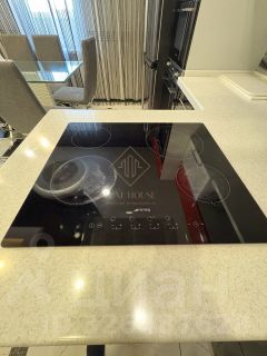 Кухня укомплектована мебелью от "Командор", встроенной итальянской техникой SМЕG и элегантной столешницей из искусственного камня. Двери из натурального ясеня подчеркивают статус квартиры.