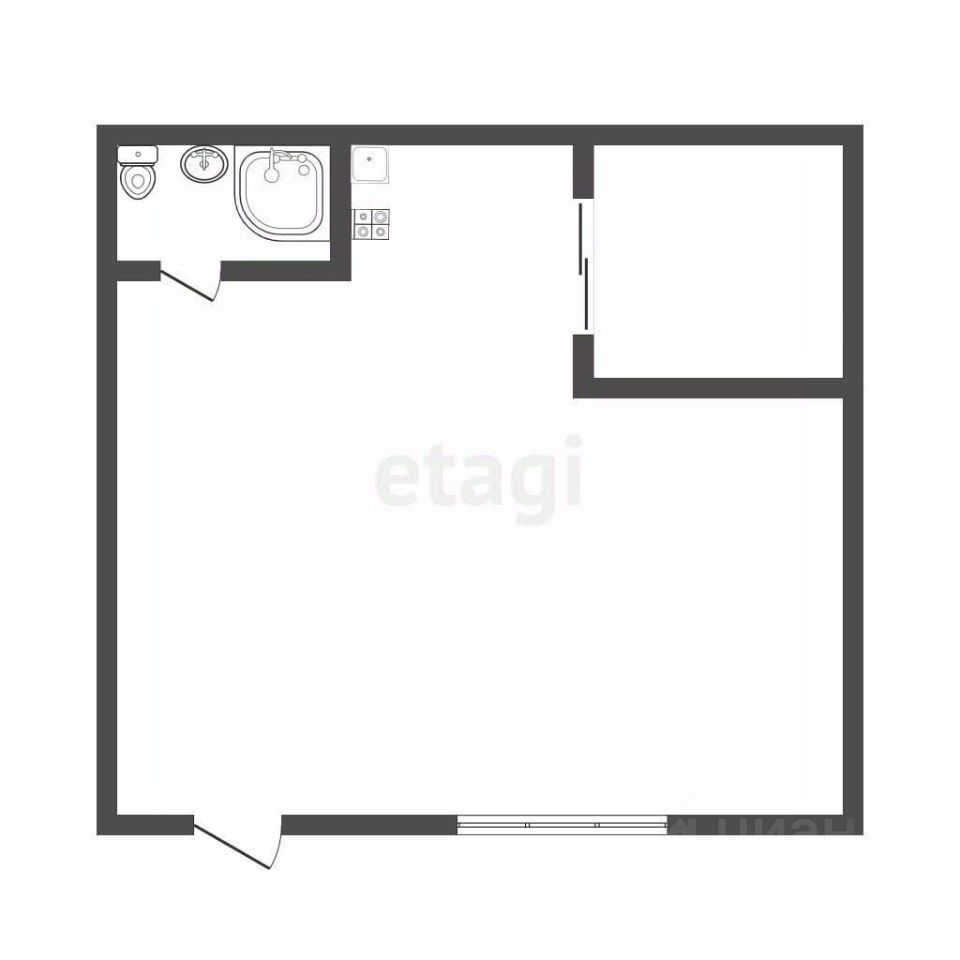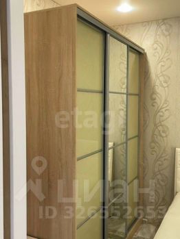 Кухонный блок оборудован всей необходимой техникой и мебелью, в комнате установлен удобный шкаф-купе.