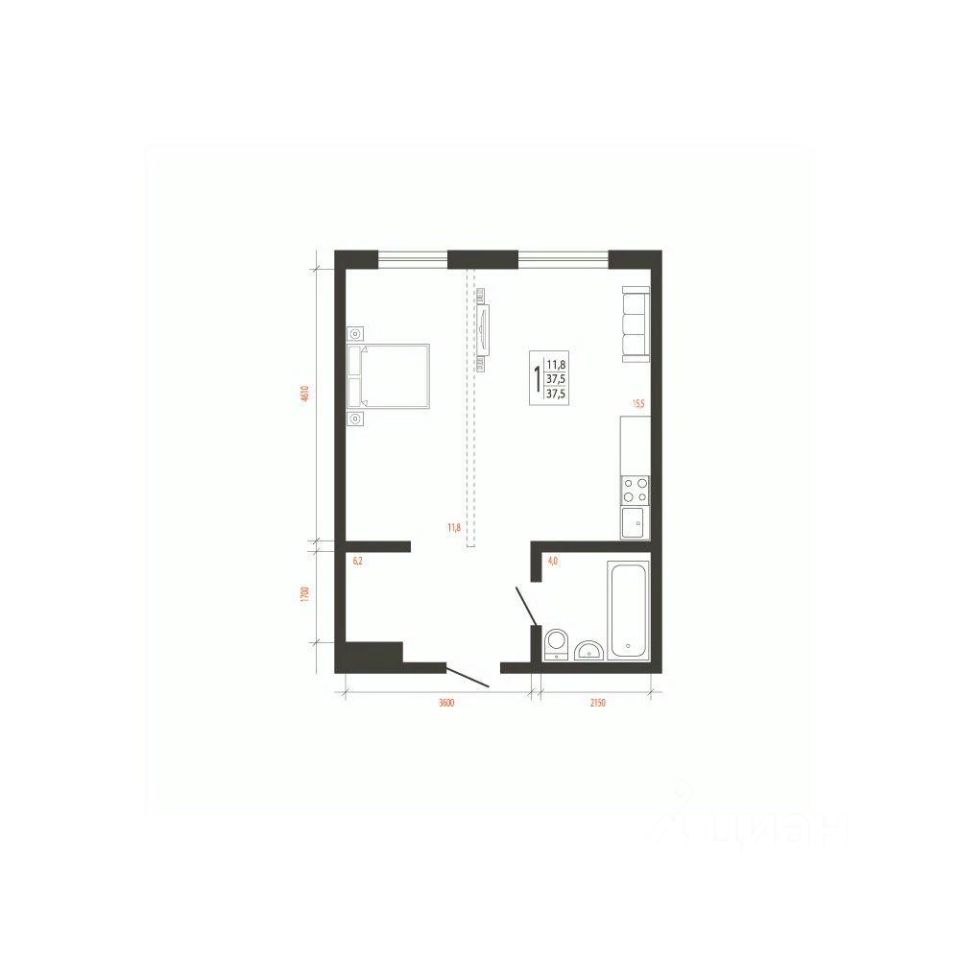 Общая площадь37,5 м²