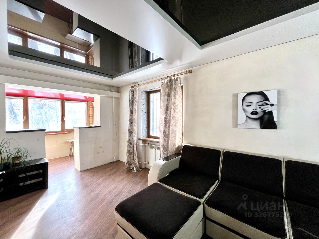 Квартира расположена на высоком 1-м этаже. Все окна выходят во двор. Есть балкон. Чисто, тихо, уютно. Всегда есть места для парковки автомобиля.