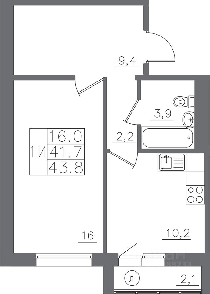 Общая площадь43,8 м²