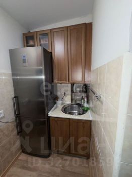 Кухня полностью укомплектована мебелью и техникой, включая холодильник и стиральную машину.