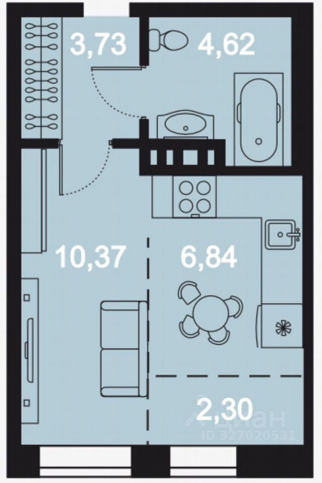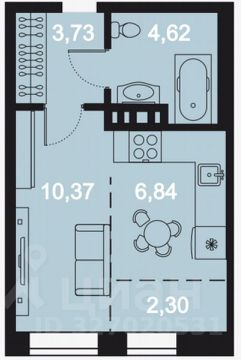 Общая площадь квартиры - 27.86 кв.м., комната - 10.37 кв.м., кухня - 9.14 кв.м., при необходимости, в кухне можно выделить теплую лоджию, с.у. совмещен - 4.6 кв.м., предчистовая отделка отделка Whitе bох, высота потолка - 3.10 м. Ввод в эксплуатацию - 3 квартал 2026г.