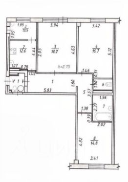 Высота потолков 2,75 м — создает ощущение воздуха и простора.