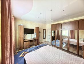 В квартире косметический ремонт, во всех комнатах и кухне ламинат и натяжные потолки, окна ПВХ.