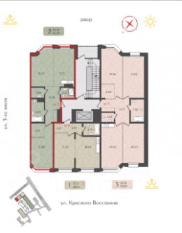 Состав этажа: 3-комнатная квартира — 109,7 м 2-комнатная квартира — 82,6 м 1-комнатная квартира — 46,3 м - Ваши безграничные возможности создать просторные апартаменты для семьи. Организовать приватный домашний офис и гостевые зоны. Сохранить планировку для сдачи в аренду премиум-класса.