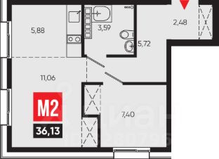 Общая площадь36,13 м²