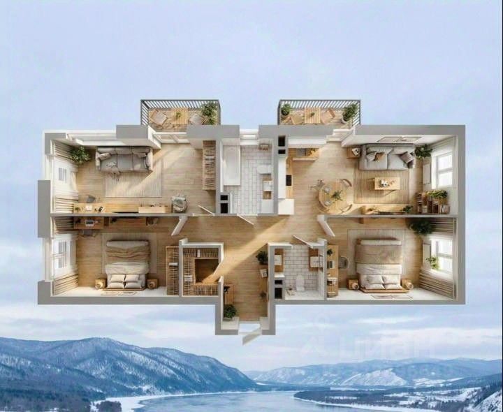 Окна квартиры выходят на три стороны дома, а из них открывается завораживающий вид на воду. Это не просто квартира, это место, где вы сможете каждый день наслаждаться живописными пейзажами, наблюдать за рассветами и закатами, ощущая умиротворение и спокойствие.