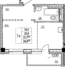 S= 29,8 кв м (25,9 квартира + 3,9 балкон)