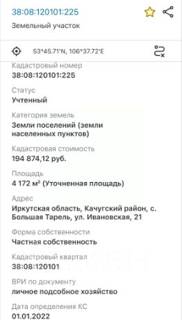Кадастровый номер для проверки: 38:08:120101:225