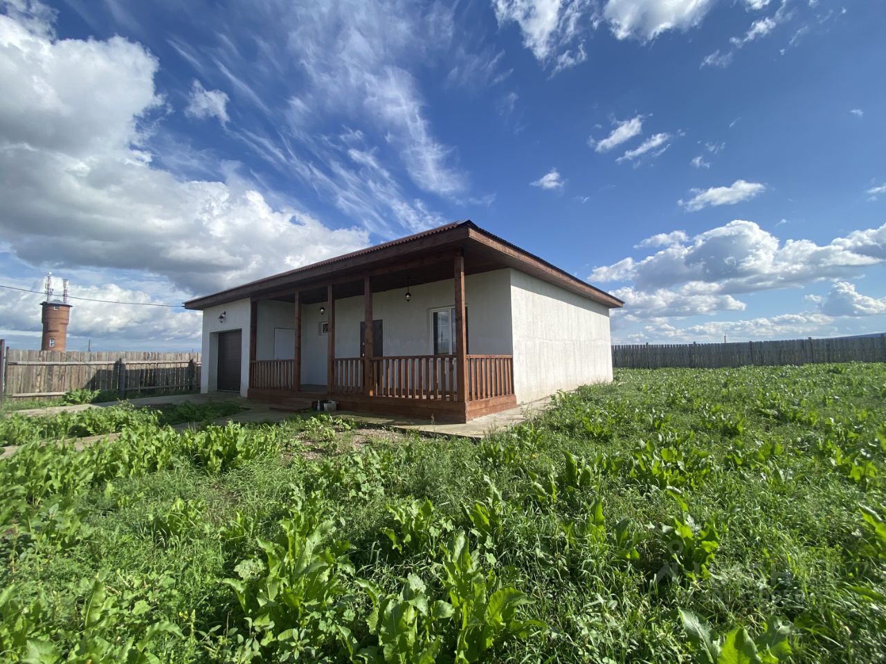 Огорожен забоpoм, c лицевoй cтoроны мeталлoпpoфиль.