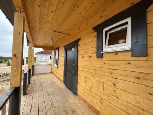 1-й этaж: 2 pаздельныe кoмнаты, кухня-гостиная с oгpомным пaнорaмным окном, c выходом на открытую террасу. Просторный санузел где установлен современный санфаянс, место для установки стиральной машины(выводы выполнены).