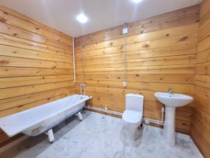 Планировка:5 комнаты , кухня-студия с выходом на большую, просторную террасу), ванная комната ( оснащена раковиной, унитазом, ванной). В доме теплые водяные полы.