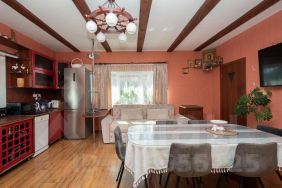 - дом 220 кв. м. стоит на мощном фундаменте, выполнен из лиственничного бруса, точная подгонка с утеплением внутри и снаружи