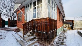 Площадью 61,7 м2, на участке 6 соток. Дом брусовой, отделан кирпичом.