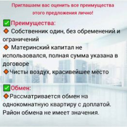 РАССМОТРИМ ОБМЕН!!!!!!!!! на однокомнатную квартиру с доплатой.
