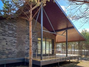 - стены дома: кирпич рядовой пустотелый + кирпич облицовочный (природные цвета шоколад + графит, все в едином стиле);