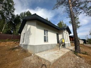 Предчистовой ремонт : теплый пол- стяжка ,разводка сантехники и электрики ,стены отштукатурены под обои, 5-ти камерные стеклопакеты , дверь с терморазрывом,наружная отделка здания - короед (белый ) .Фундамент плита.