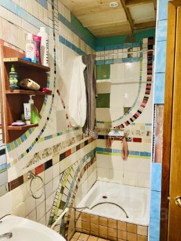 Участок разделен на два яруса, с верхнего яруса открывается живописный вид на поля и лес и подготовлен под строительство большого дома (залита монолитная плита 8*12м), нижний ярус организован как зона отдыха, с уже выстроенным гостевым домом, который может послужить уютным дачным домом с зимним проживанием.