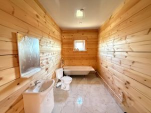 Планировка:2 комнаты , кухня-студия с выходом на большую, просторную террасу), ванная комната ( оснащена раковиной, унитазом, ванной). В доме теплые водяные полы.