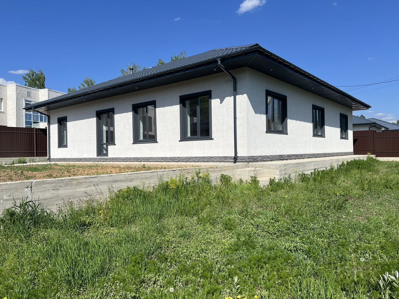 Отделка чистовая., в доме сделан теплый пол, осуществлен ввод инженерных сетей (электрика, водоснабжение, канализация, вентиляция). Разводка электрики. Стены подготовлены под покраску или иное покрытие( штукатурка по сетке, шпатлевка).