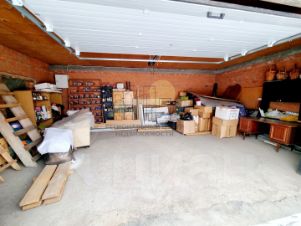 Гараж, расположенный на участке, имеет размеры 6м х 8м, он теплый и оборудован удобными откатными воротами, позволяющими разместить два автомобиля.