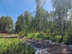 Участок ровный без уклона с березами и соснами.
