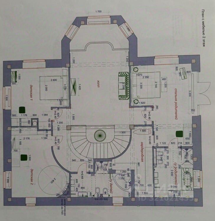 2-ой этаж мастер спальня, детская комната, гостевая спальня, санузел, зона кабинета.