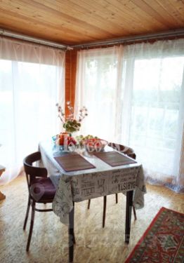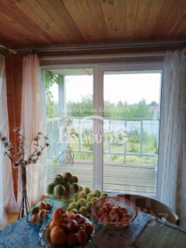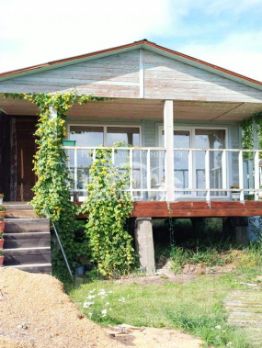 В доме: большая комната-гостиная, спальня и комната-кладовая, веранда, Дом установлен на столбах.