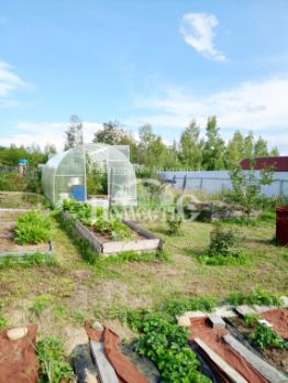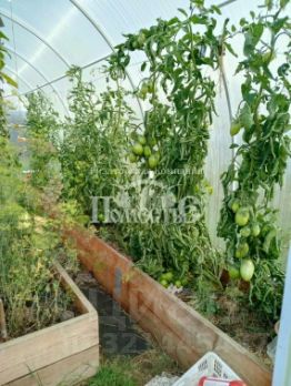 С двух сторон огорожен забором из металлического профиля, еще с двух сторон деревянный. На территории установлена теплица.