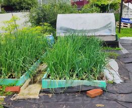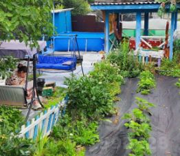 Есть не большой парник и грядки.