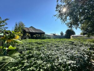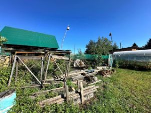 Ровный участок 15 соток, на котором расположены: баня, гараж, хоз постройки, дополнительно уличный туалет.