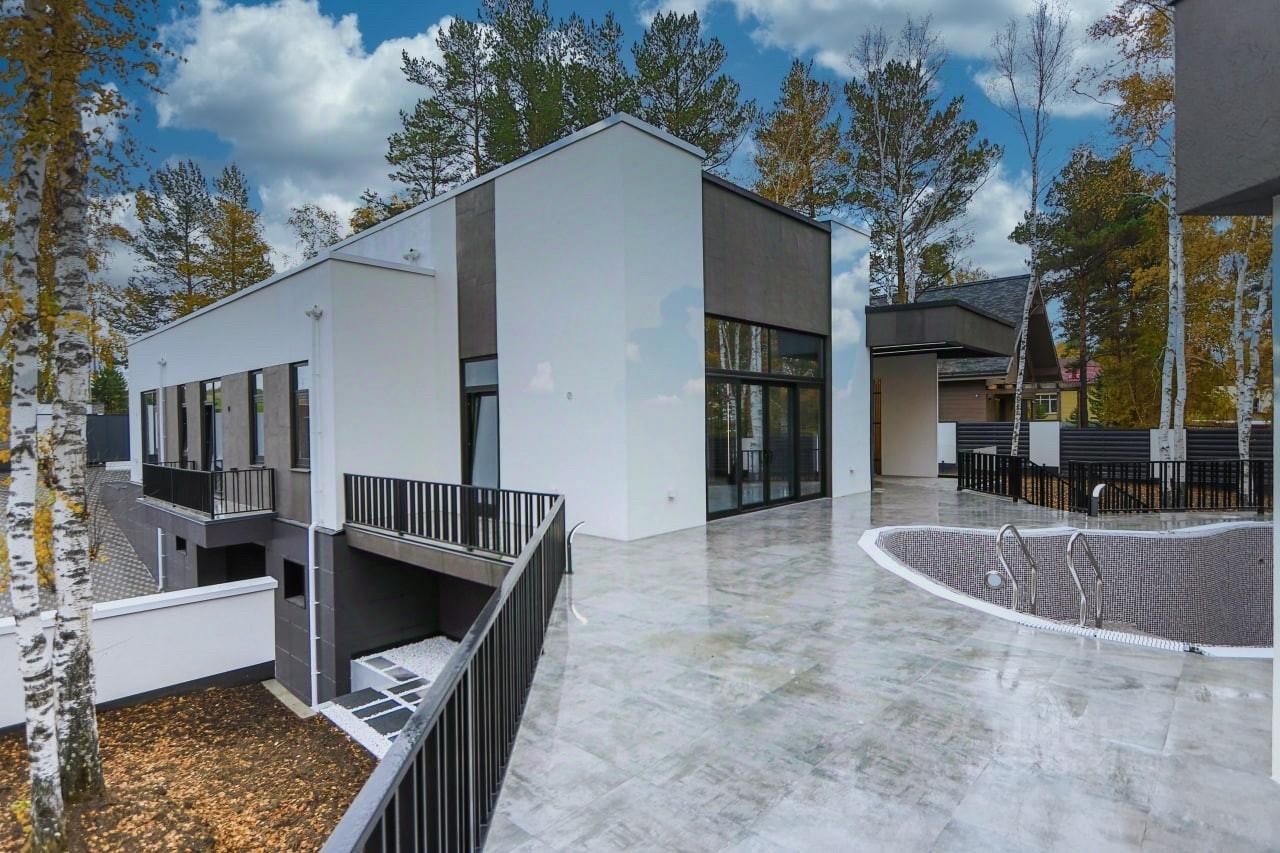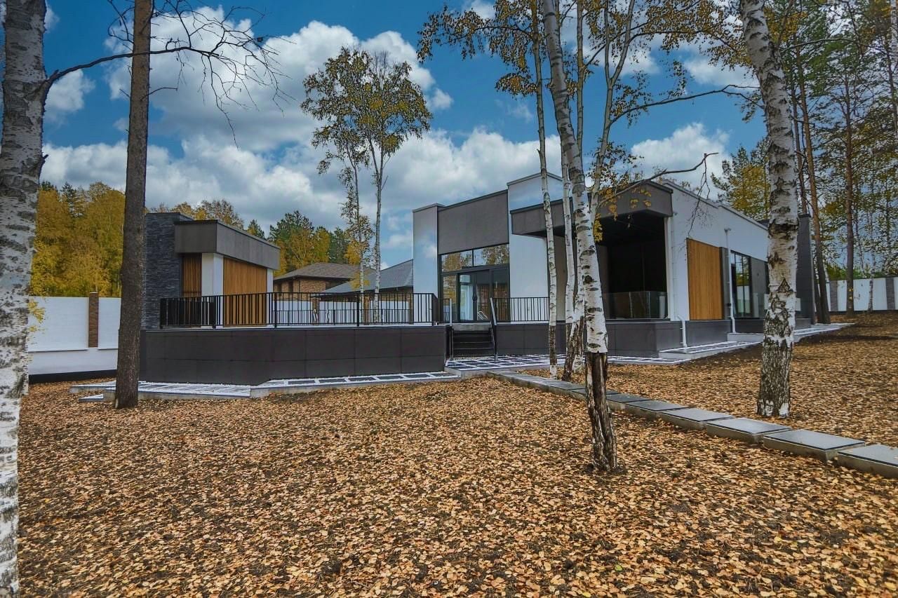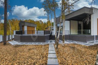 На ухоженном, полностью готовом участке 15 соток, расположен роскошный дом, внешний вид которого однозначно порадует глаз ценителелям современной архитектуры.