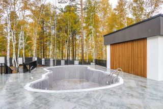 Фасад здания отделан самыми современными материалами. Крупноформатный керамогранит запилен по углам под 45, декоративная штукатурка шуба и гибкая керамика. Деревянные рейки для уюта и приватности в зоне барбекью и стекло триплекс вместо ограждений в зоне террасы и балконов. Вся терраса выложена крупноформатным керамогранитом и разделена на несколько зон, в каждой зоне уютное вечернее освещение и какой то гипнотический релакс, с видом на залив. В теплое время года, центром притяжения для детей - станет шикарной разноуровневый бассейн 54 куба, а для взрослых, если захочется приватности - деревянная беседка, расположенная прямо на воде, подход к которой, это подсвеченная тропинка из деревянной доски.