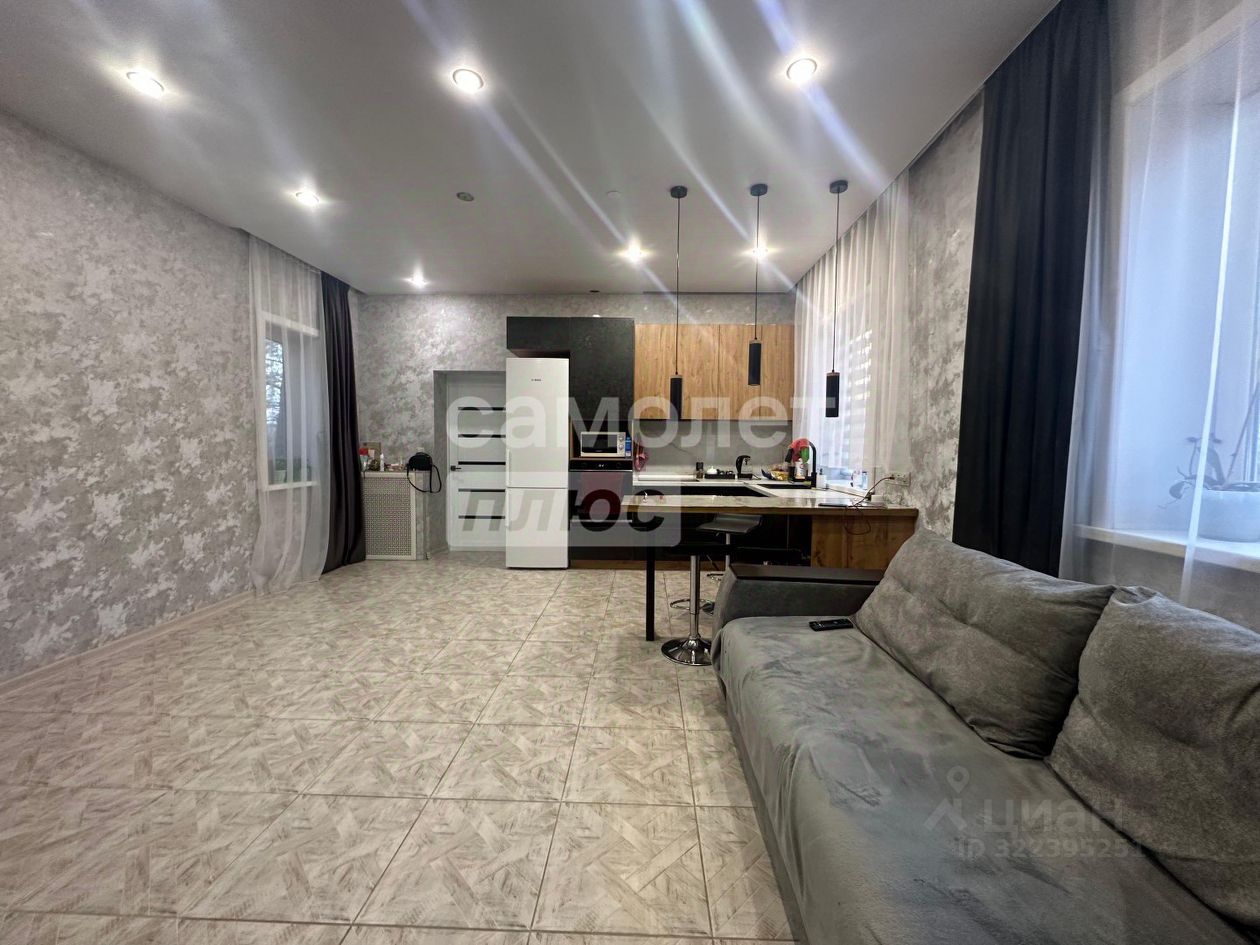 В доме сделан ремонт под ключ на первом этаже: натяжные потолки с точечными светильниками,межкомнатные двери, плитка / ламинат на полу , в сан.узле плитка, кухня новая остаётся покупателю.