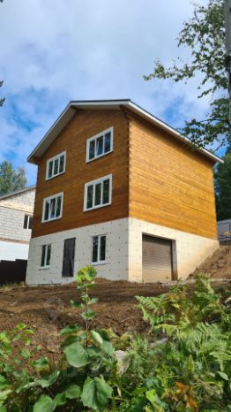 Дом выполнен из строганного бруса 18х18 в два полноценных этажа + цокольный этаж.
