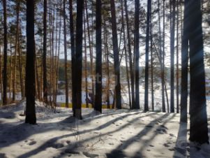 Расположен на пригорке, с которого открывается прекрасный вид на озеро, наполняемое из освященного источника. На участке сохранены вековые сосны. Это крайний участок, дальше - сосновый бор.