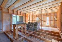 В доме крыша уже утеплена, часть труб установлены для подсоединения к бойлерной, место для бойлерной выделено. В одной из комнат утеплен пол. Так же залит фундамент для панорамной веранды.