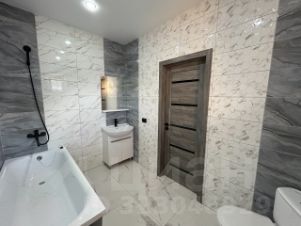 Отделка: натяжные потолки с точечными светильниками, линолеум в комнатах, керамогранит в гостиной и санузле.