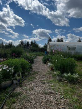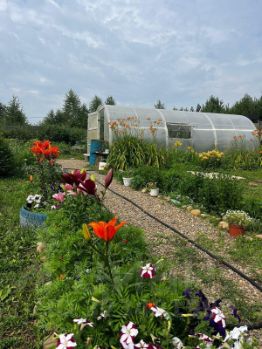 На участке имеются различные насаждения (малина, смородина черная и красная, яблоня, вишня, абрикос), теплица 6 на 3.